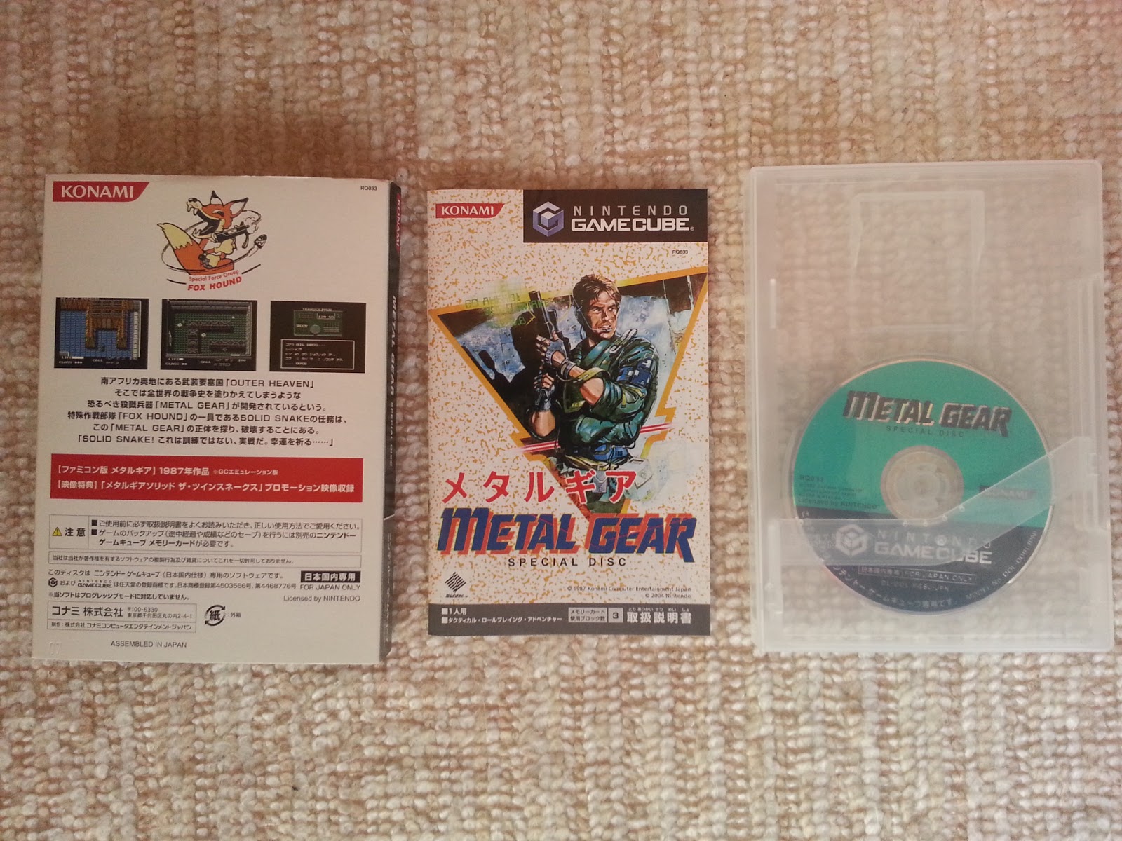This is the GameCube copy of Metal Gear the original one for the NES or Famicon I suppose, that was ported over. It was released with a Premium Packaged GameCube which included Metal Gear Solid Twin Snakes, Memorandum book which had sketches and photos and this Metal Gear Special Disk. It's actually and Emulated version of the Famicom version.